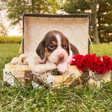 A 50% nonrefundable deposit is required to reserve a beagle puppy. This deposit guarantees that you get the puppy of your choice if available. If the puppy is not available the deposit will be transferred to a puppy of your choosing from the next litter.