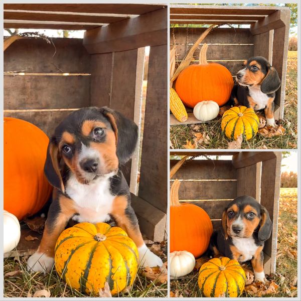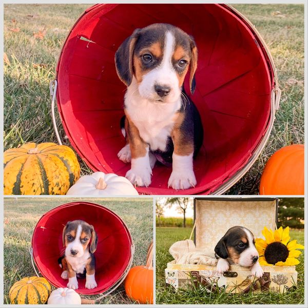 This charming Pocket Beagle Puppy is Jax. He was born on September 10th, 2025 and will be ready for his forever home when he is 8 weeks old. His mother is Flopsy and his father is Andre. He will weigh from 20-25 lbs. when he is fully grown. Liam is eligible to be registered with the North American Purebred Registry.